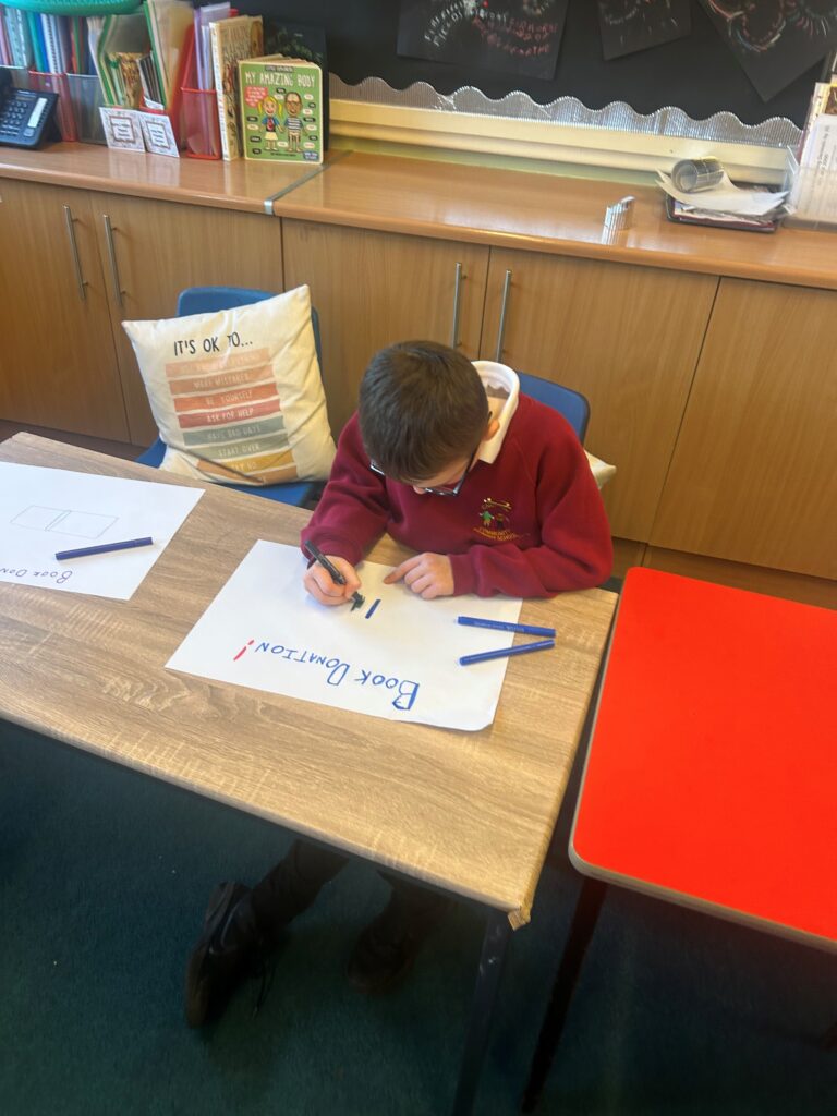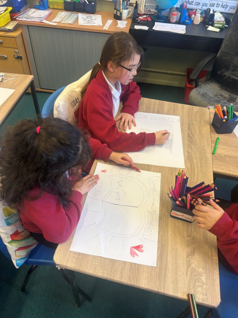 We made posters to advertise our appeal and displayed them around school. We have had a great response so far and will keep you posted with our progress!