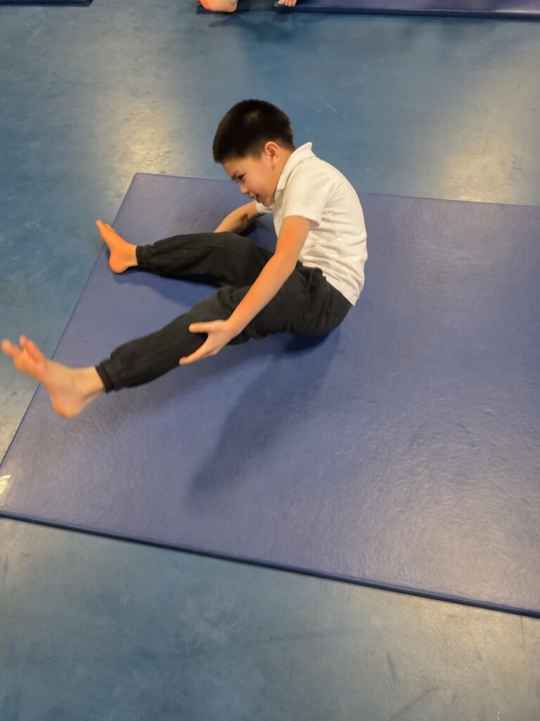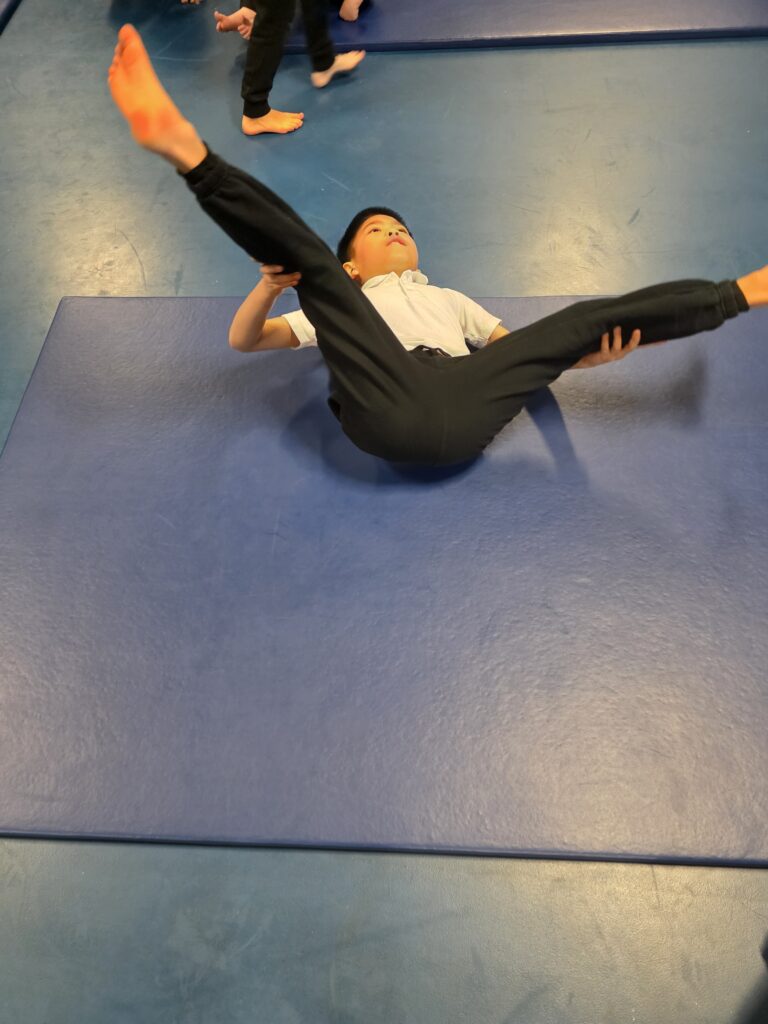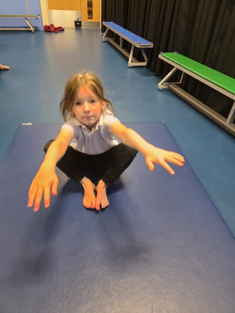 This week in their Gymnastics session with coach Millie, our Year 3 children were practising their rolling.