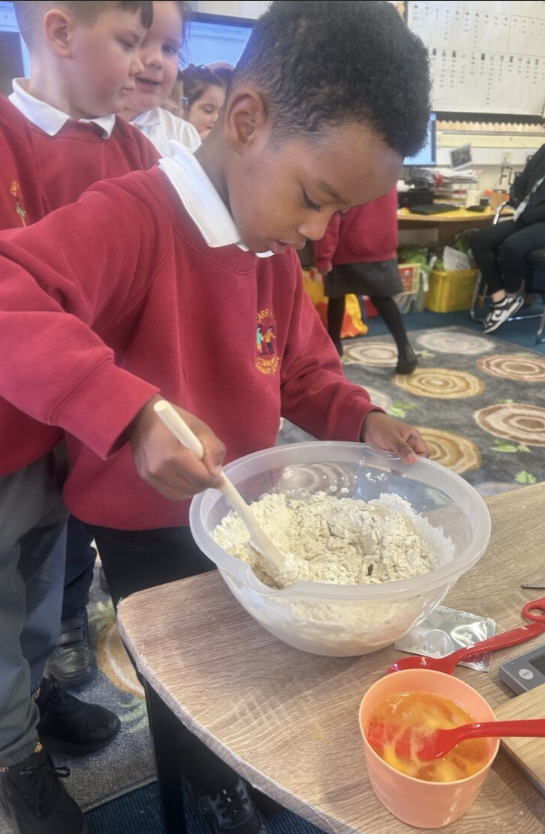 In Design Technology this half term we have been making bread. First, we researched what different types of bread looked like and we got to taste some different types of bread. These included wholemeal bread, wraps, German rye bread and French brioche.