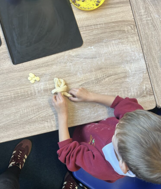 Next, we used dough to practice our technical skills. We used dough to test our what sort of shapes we would like our own bread to be. The shapes we practise included, spirals, plaits, twists and flowers.