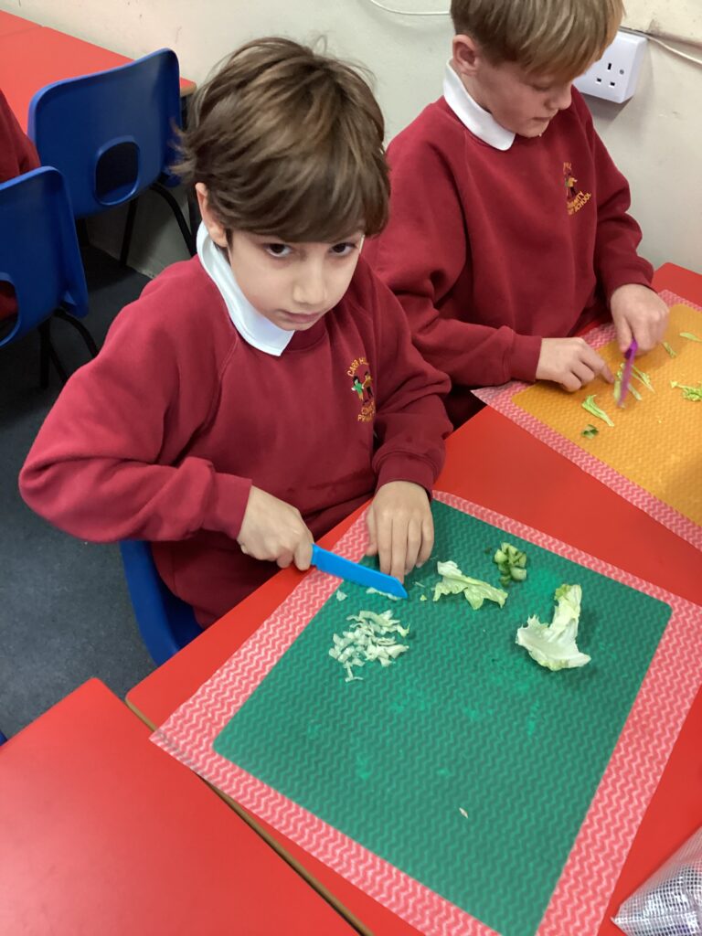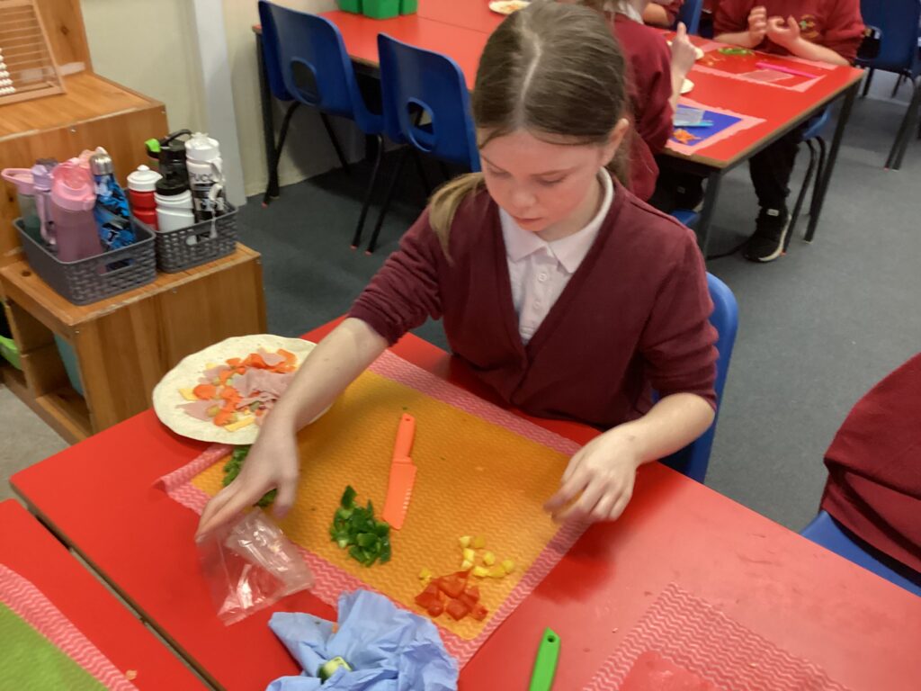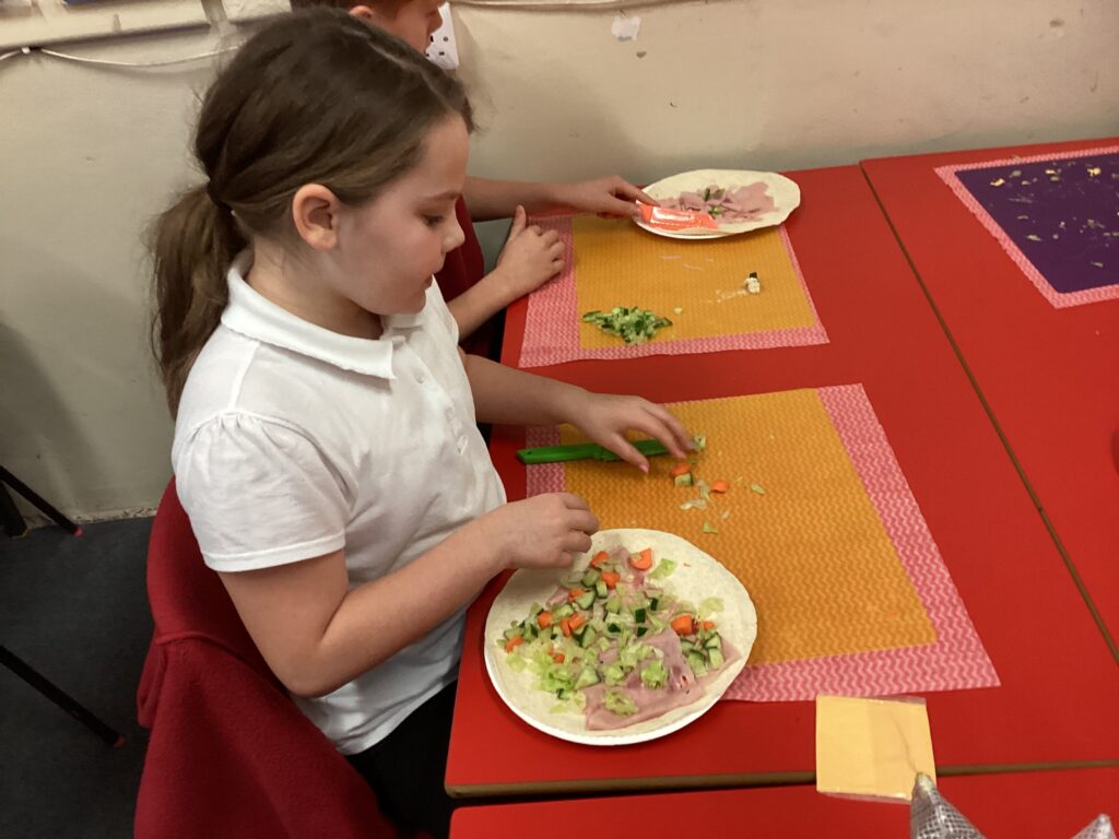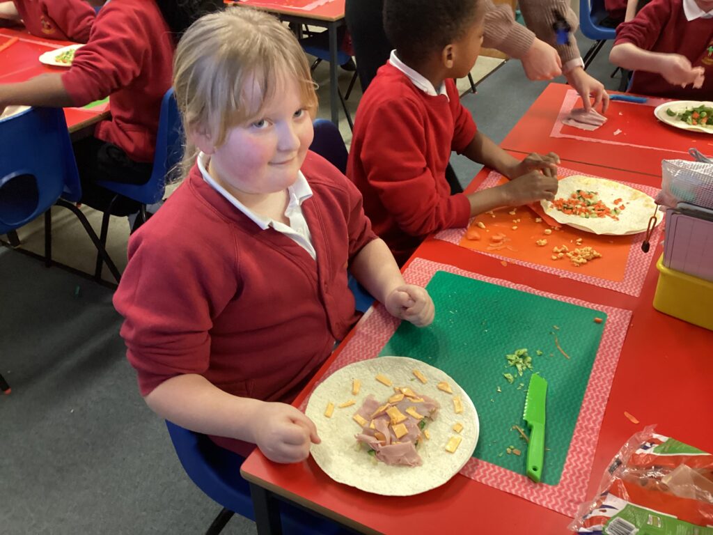 Year 4 have been making sandwiches in DT this half term. We started by carrying out research into different sandwiches and tasted different bread options that we could use. The following lesson we practiced the technical skills that we would need when preparing the fillings for our sandwiches. Using carrot, cucumber and lettuce, we practiced peeling, chopping and cutting safely. In the next lesson, we designed our sandwiches following a design brief and the ‘Eat Well Plate’ guidelines. We enjoyed using everything that we had learnt, to make our sandwich wraps. We loved eating and evaluating our sandwiches! We hope Mr Harris’ Uncle Gino chooses to sell our sandwiches in his cafe in Rome!