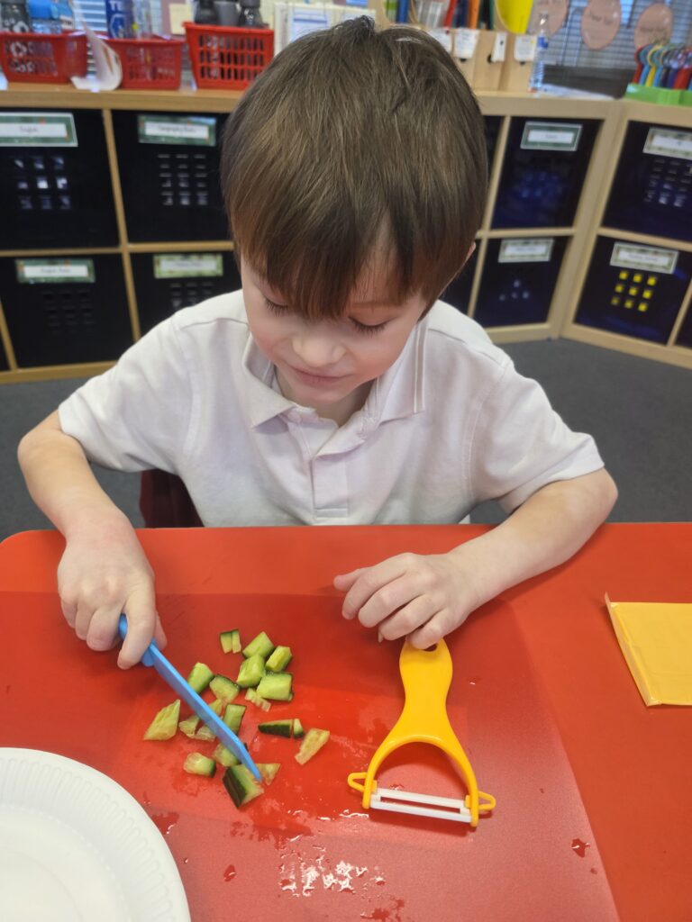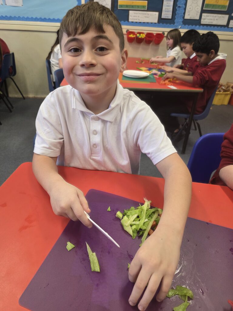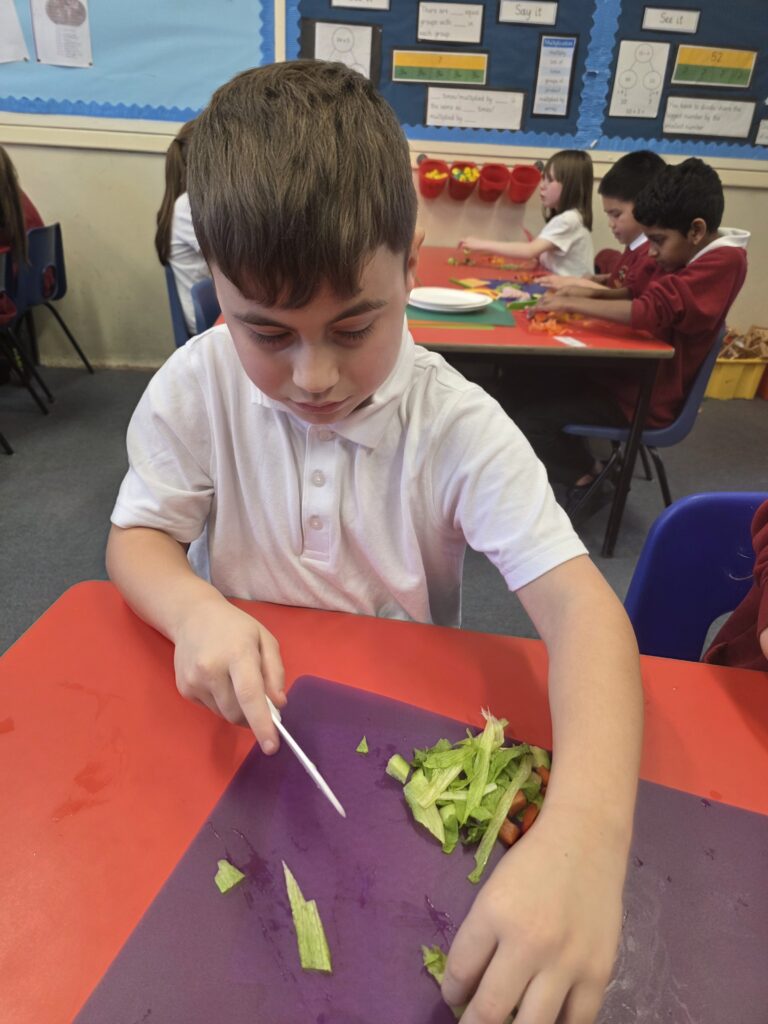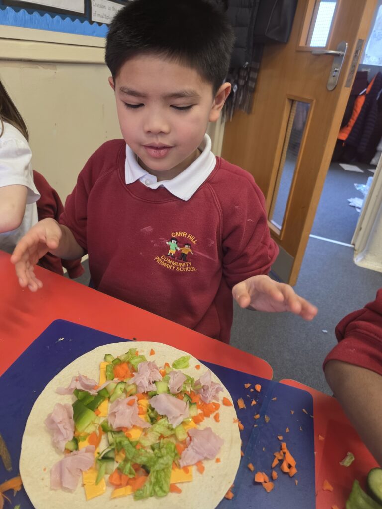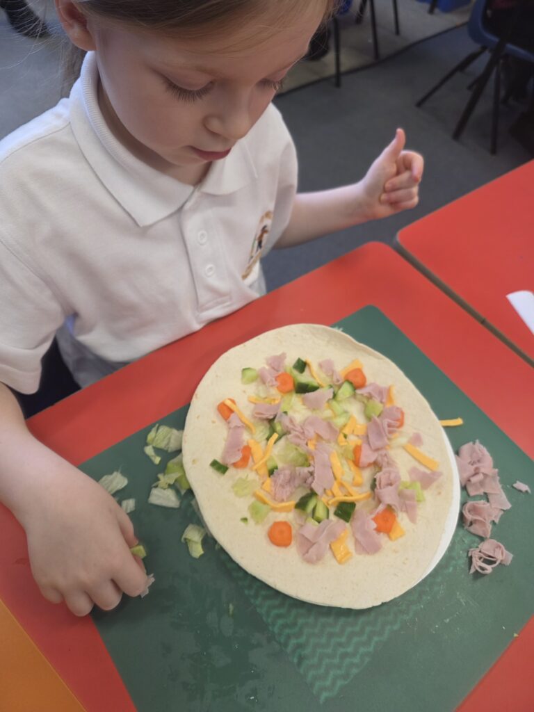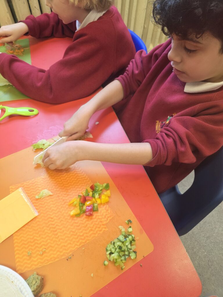 Our children in Year 3 have meticulously planned, researched and designed their own tortilla wrap! They conducted background research: bread tasting. They learnt and refined their technical skills: cutting and chopping. Finally, they made their sandwiches and they turned out brilliant!