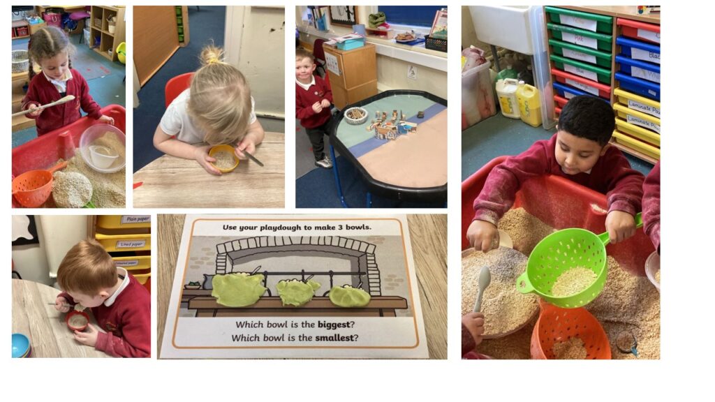 This half term in Reception, we are learning about different Traditional Tales. This week we have been focusing on Goldilocks and the Three Bears. First, we read the story. The children then explored new areas in continuous provision where they completed different activities all about Goldilocks and the Three Bears. We have sequenced and retold the story, role played in the small world and home corner and used playdough to make bowls. We have even tried making and tasting our own porridge – making sure that it was just right!
