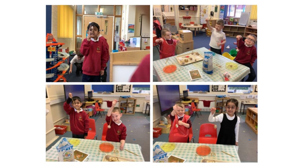 Reception children have been exploring the wonderful topic of Winter through a range of exciting, hands‑on activities. They learned about the changes that happen across the seasons and enjoyed playing in the snow, observing how the colder weather transforms the natural world. The children also supported local wildlife by making their own bird feeders, discovering how important it is to care for birds during the winter months. As part of their learning, they shared the story of Stick Man and had great fun creating their own stick people, using their imaginations to bring the characters to life.