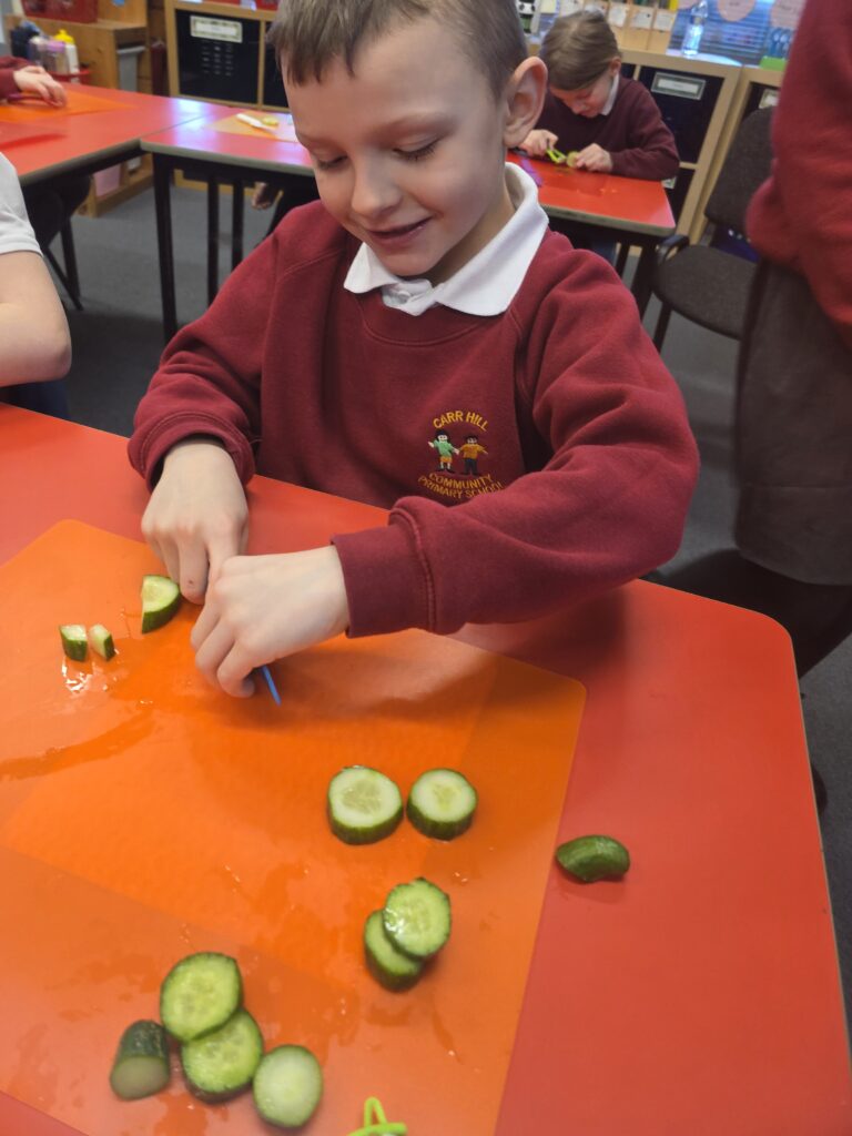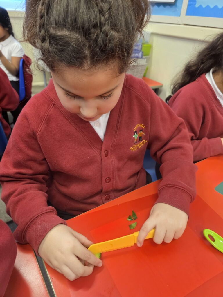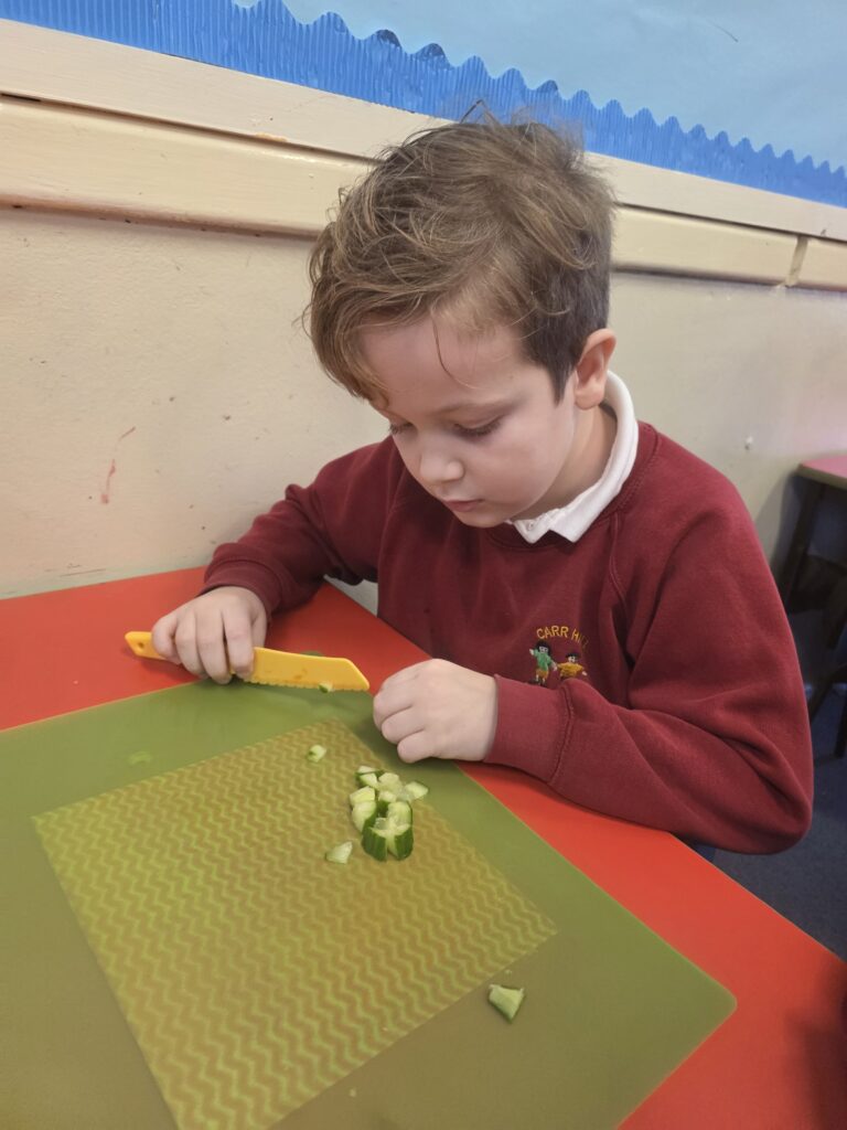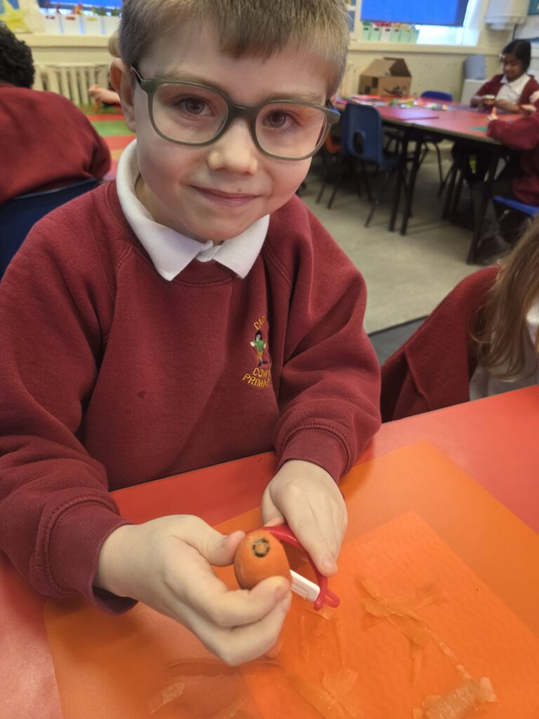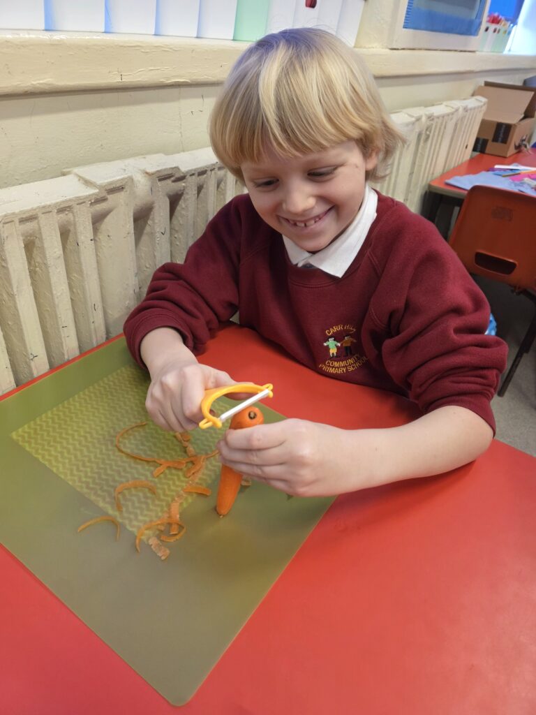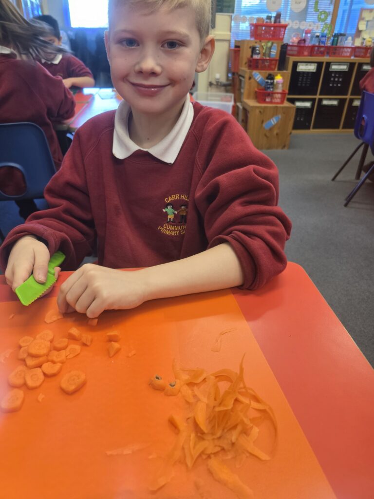 In Year 3, we have been learning how to safely and hygienically prepare foods! We learnt how to peel and use three different cutting skills: bridge hold, claw and cross chop.